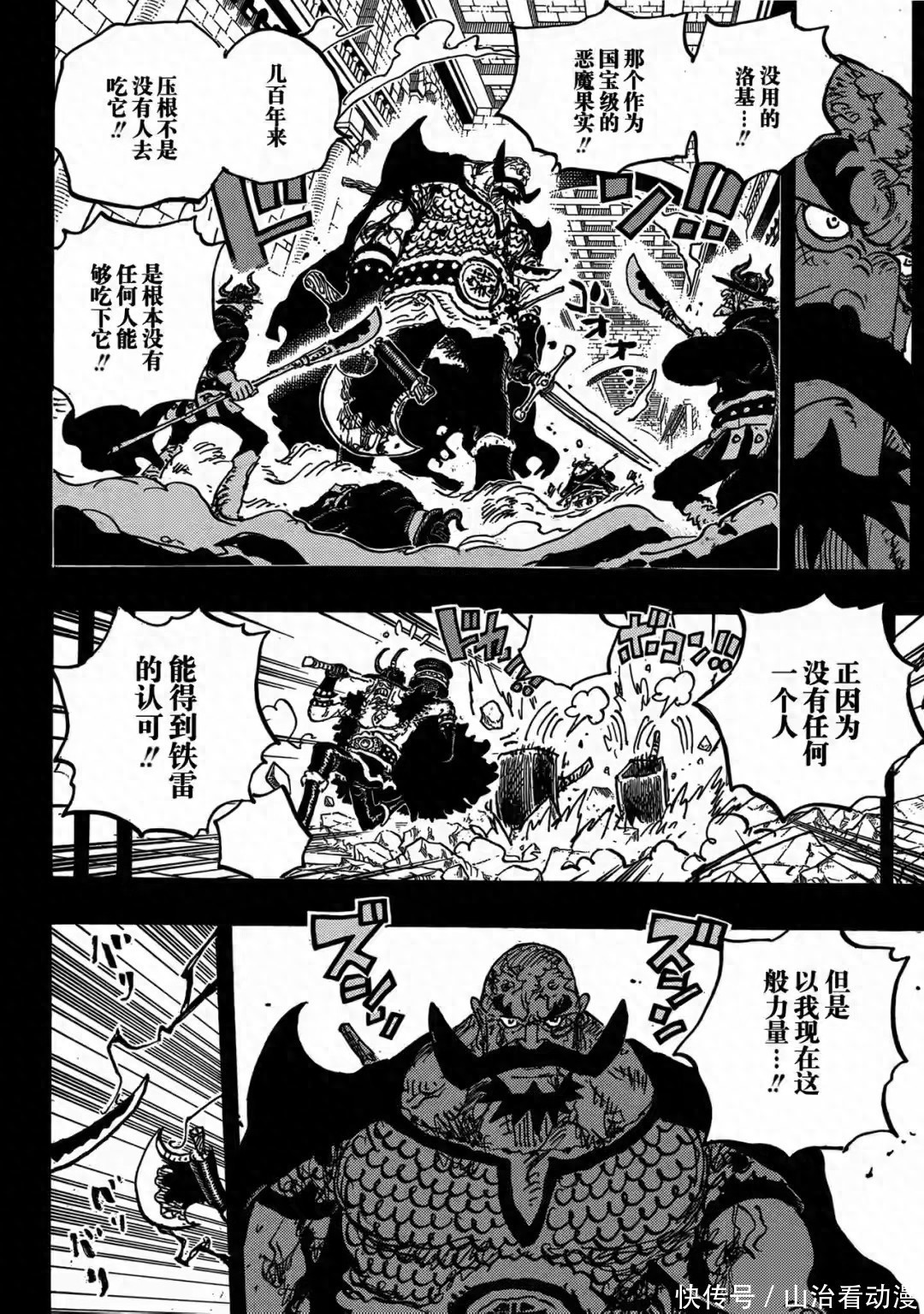 哈拉尔德国王的回忆还没有结束,这段回忆剧情还是很长的,足足连载了大半年时间。洛基王子正在讲述城堡大战的真相,路飞和海尔丁在听洛基王子讲述,哈拉尔德国王被伊姆大人操控,他正在城堡里大开杀戒。